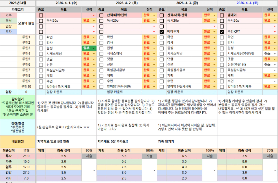 매일 루틴 간소화 하니 좋다.(확언.감사.독서.시세.목실감)