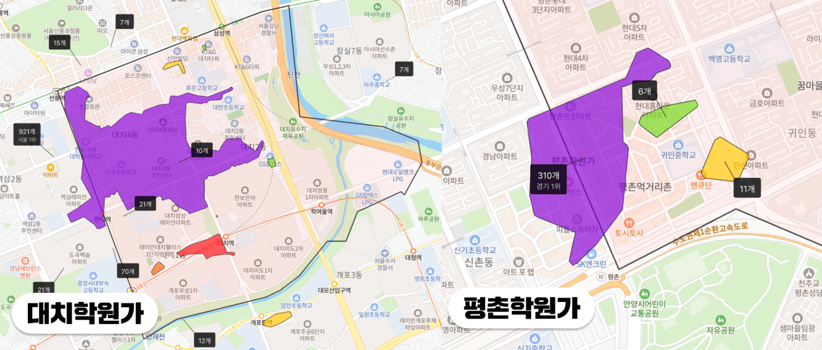 그런데 여기서 중요한 사실은요, 학군지를 볼 때는, 학원의 '수' 그 자체보다는