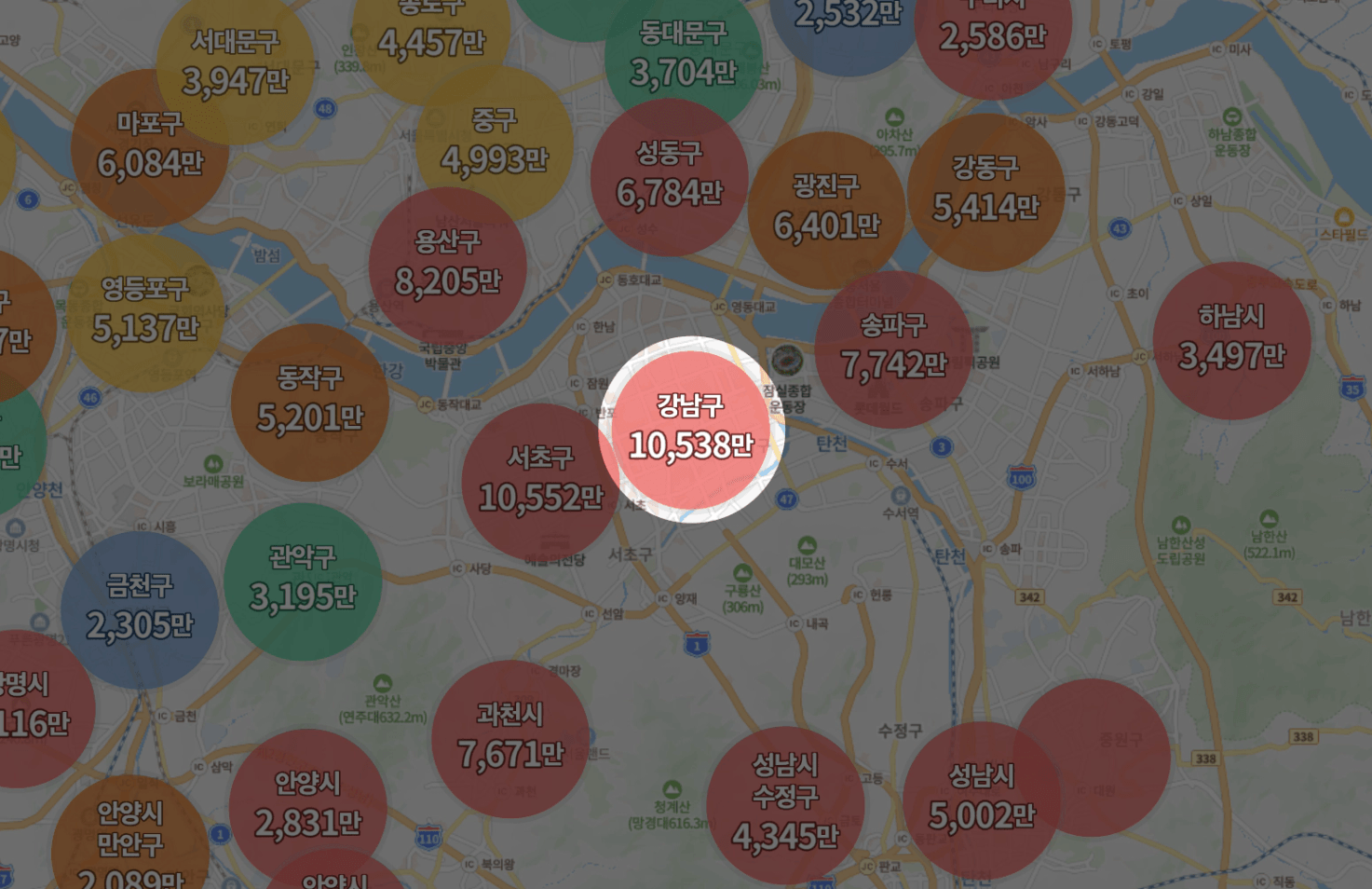가장 간단하게 강남과 비교해보면,