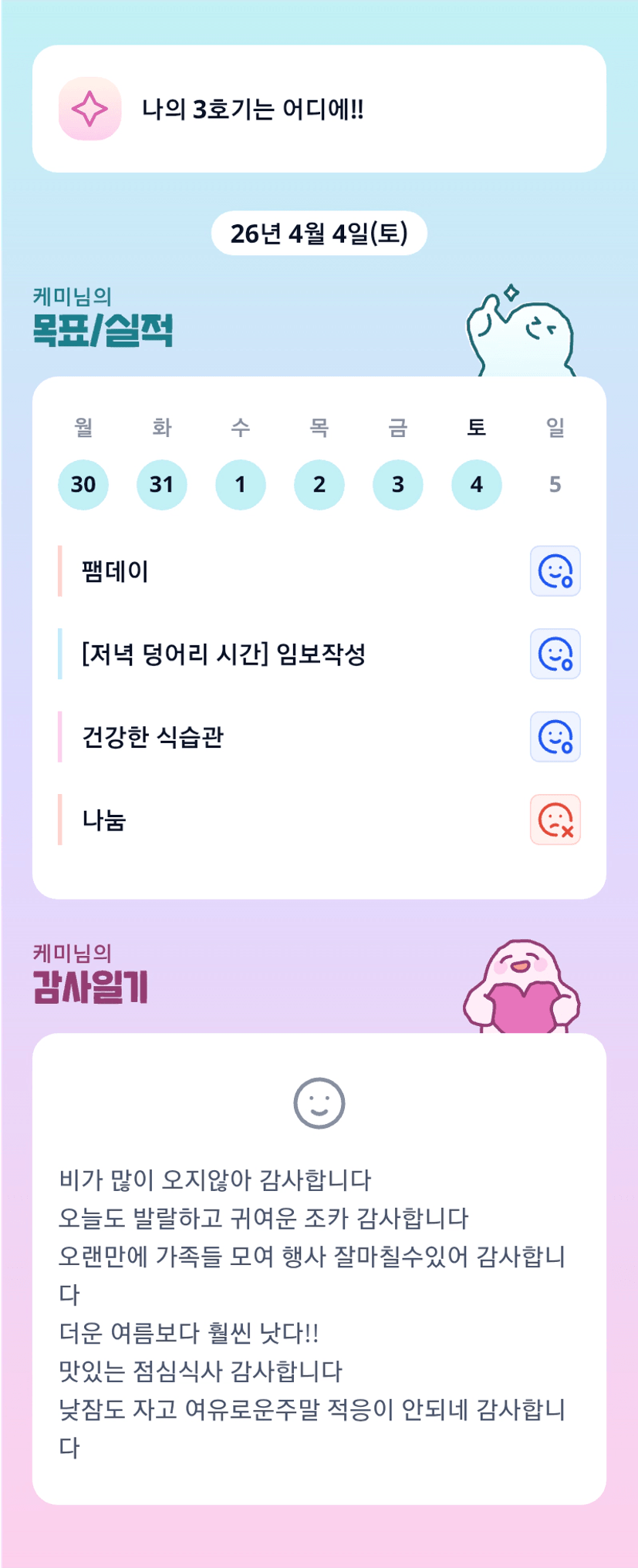 어제 충전의 시간이였군요!!! 오늘 단임 파이팅!
