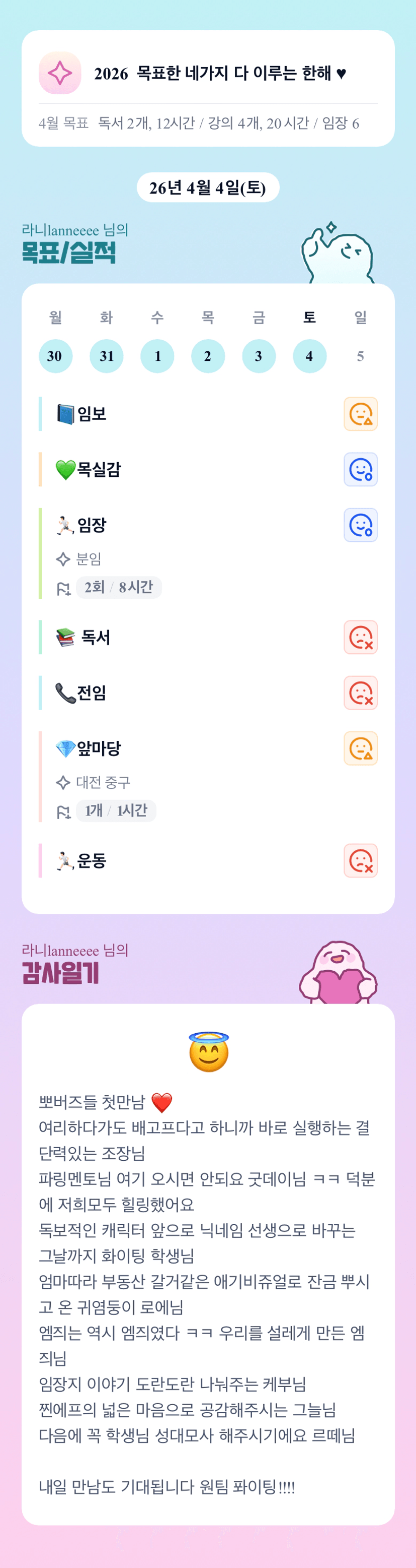 이번달 방향성 잘 잡아보겠습니다.