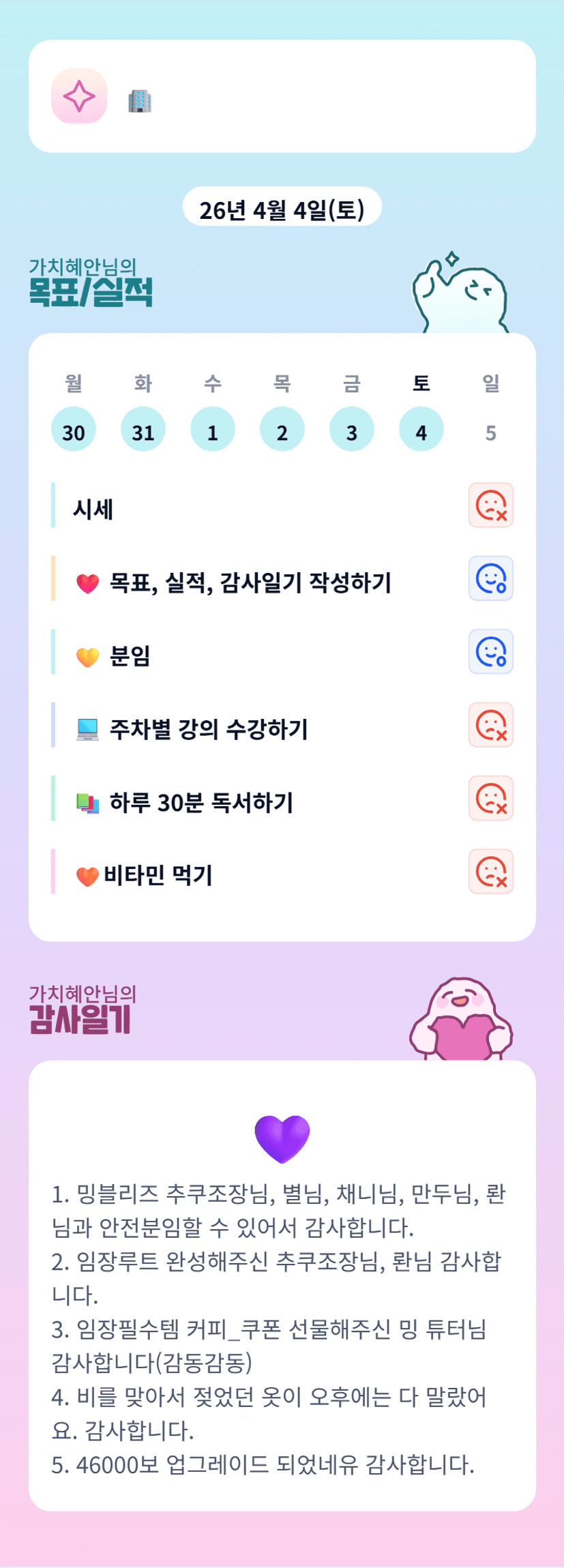 헉..어딜 가셨길래..4만6천보!! 고생많으셨습니다. 오늘도 화이팅!