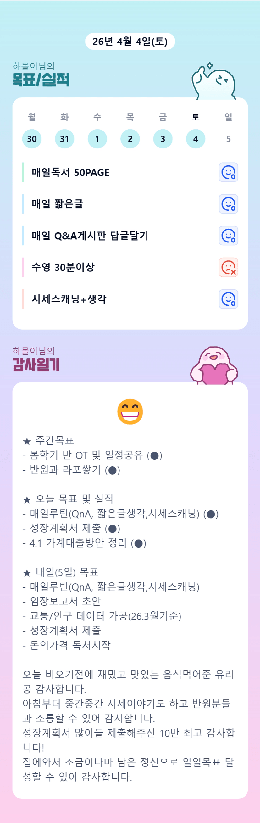 오늘도 더 많은 이야기 나누어요 반장님!!