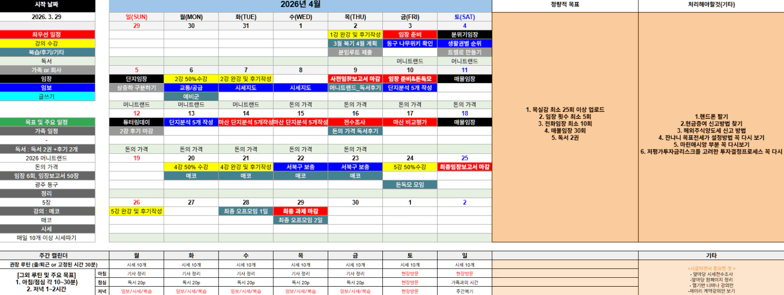 T : 4월 마산&임장지 매임 최소 3회.