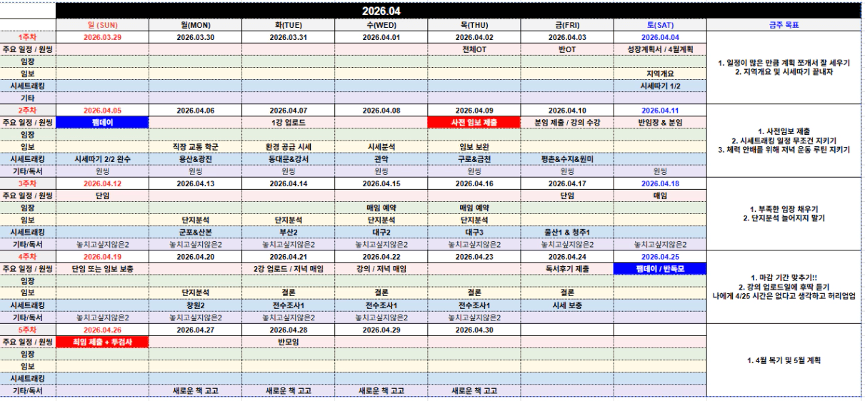 [임장] 7회 이상 / 부동산 15회 / 매물 30개