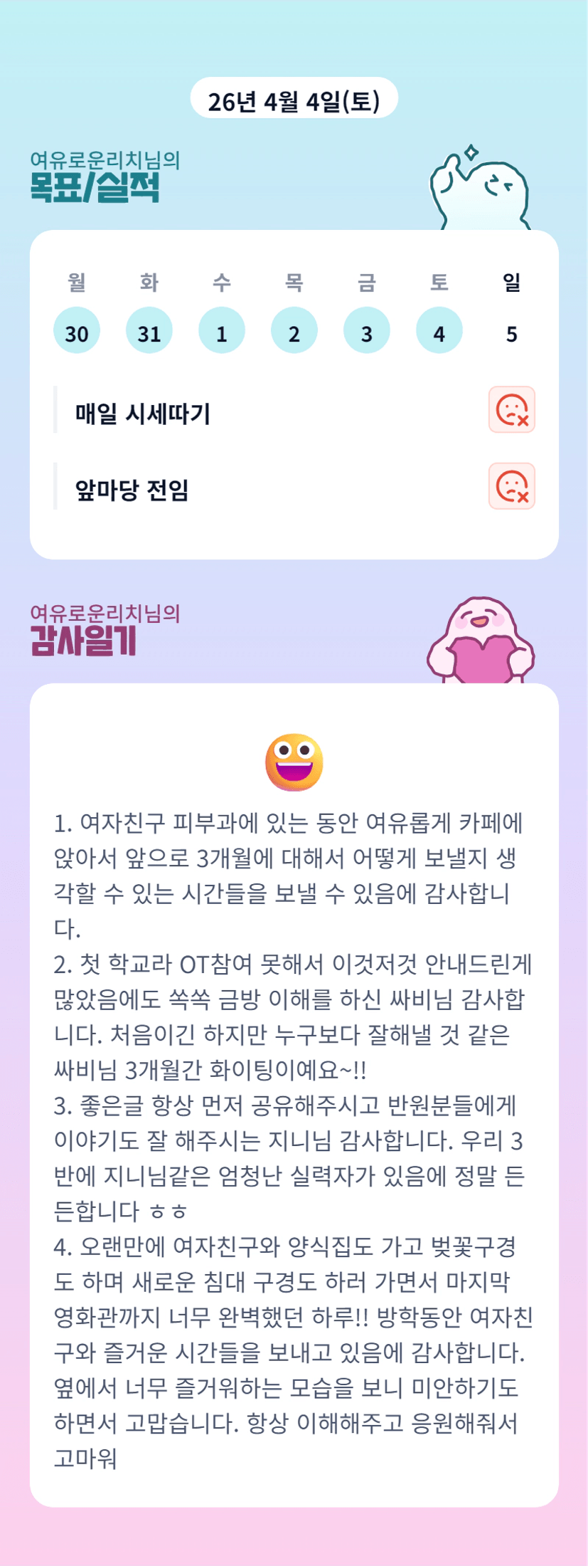 우왕 여자친구 분과 좋은 시간 ㅎㅎㅎ 행복한 방학 보내고 계시는 반장님 화이팅 ❤️