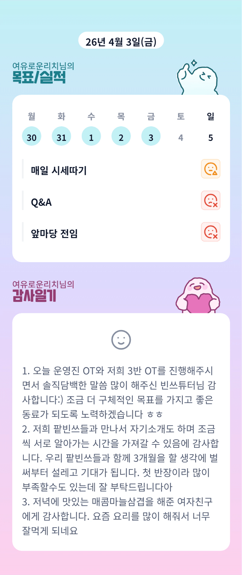여자친구분이 완전 천사시네요ㅎㅎ 팸데이 고생하셨습니다 반장님🙌🙌