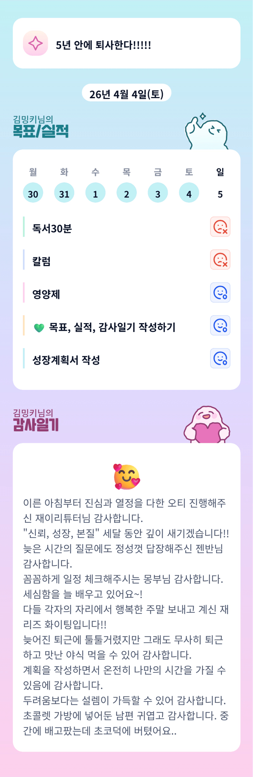 밍부님 주말에도 업무하시느라 고생 많으셨어요 ㅠㅎㅎ 이번주도 파이팅입니다💛