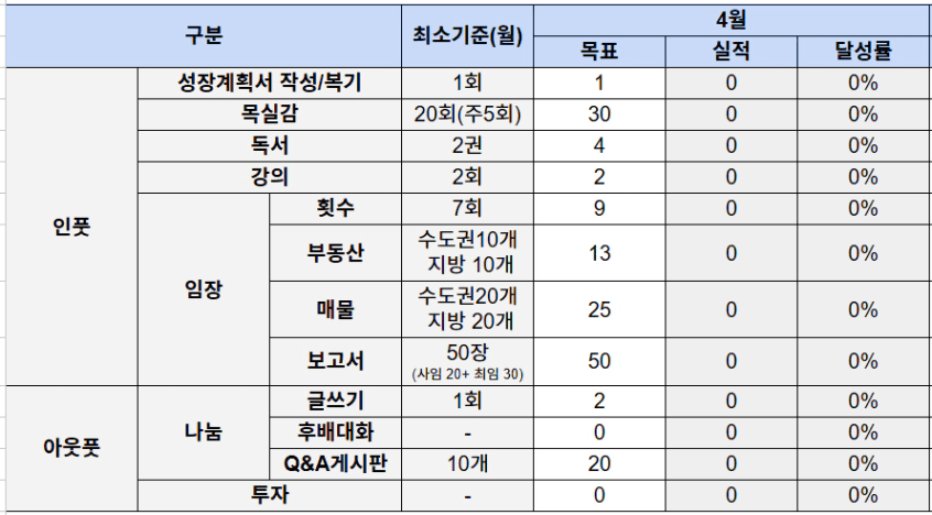 4월에도 투자 전략 부분과 마인드 부분으로 나누어 작성해보려 합니다. 먼저 주제가 생각났다면 개요를 먼저 정리해두는 게 시간이 적게 걸린다는 걸 알았습니다. 그리고 글쓰기를 별개의 영역이라고 생각하지 않고, 평소 반원들과 소통 속에서, 독서를 하면서, 임보를 작성하는 과정에서 글쓰기와 이어지도록 해보는 게 중요하겠습니다.