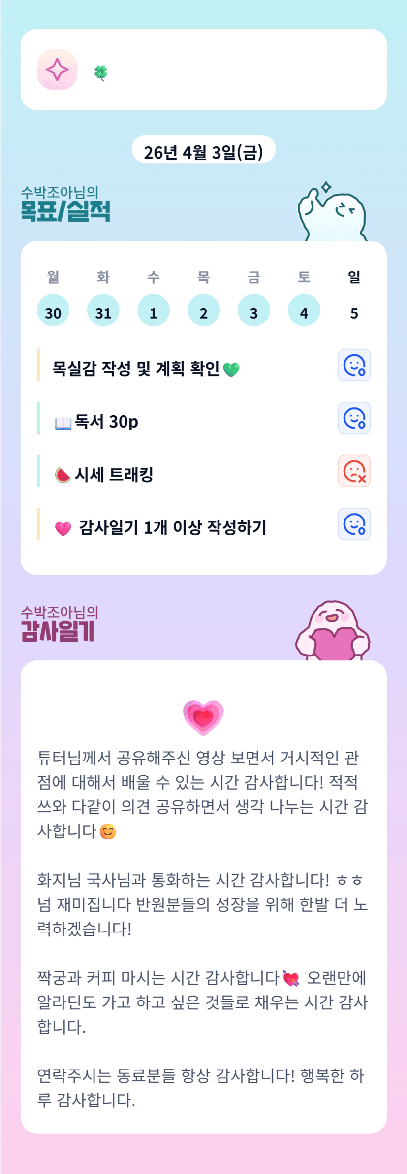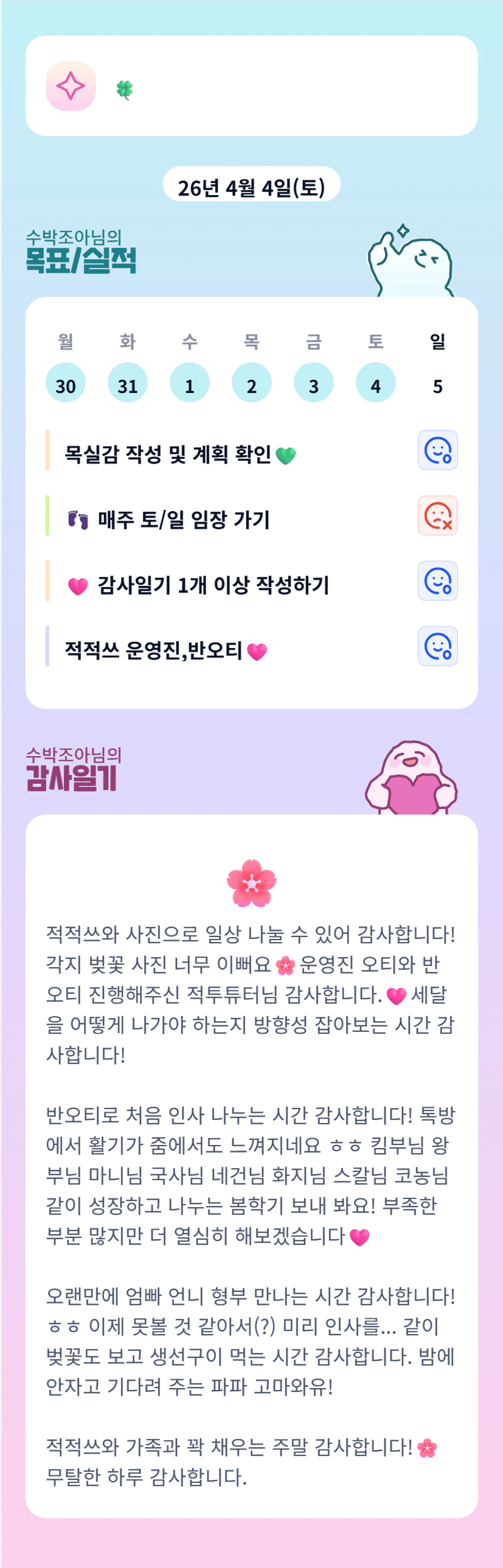 수반님이 있어서 든든합니다! 3개월 함께 빠이팅해봐요♡