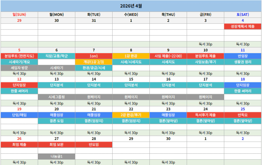 4월 계획‘ 이런 동료분들과 튜터님 다시 만날 수 없다!! 누구나 간절히 원하는 기회를 힘들게 얻은만큼 이번이 마지막이라 생각하고 스스로에게 후회없이 반원분들에게 부끄럽지 않게 몰입해보자!!'