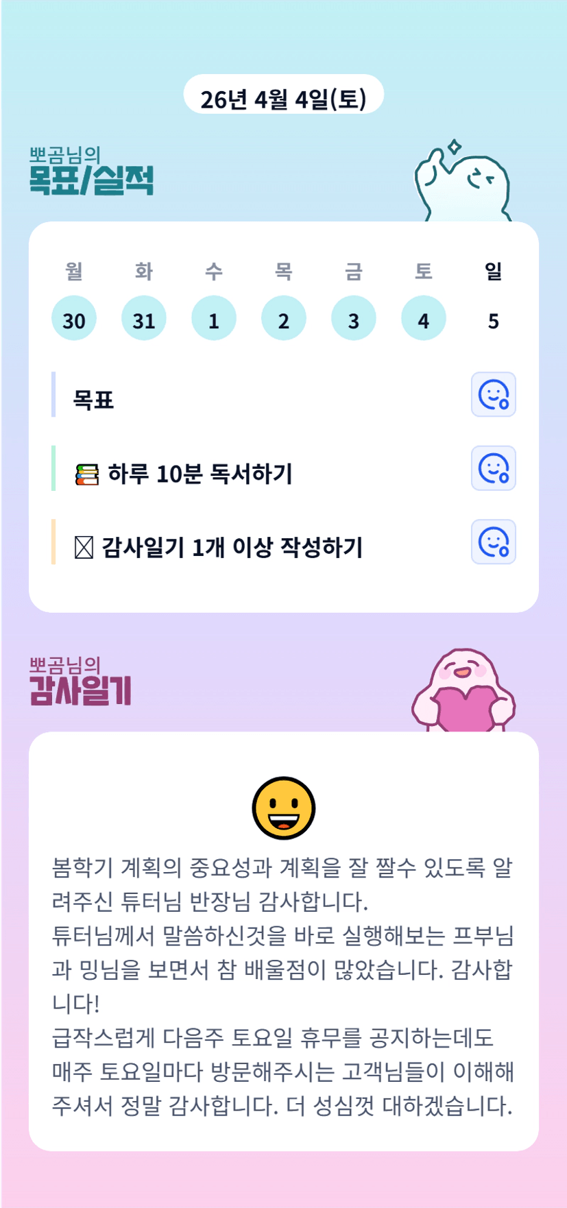 아이고 정말 다행이예요! 곰님 이번주도 고생많으셨어요~~~🩷 고객님들께서 귀한 시간 내주신만큼 더 알찬 반임장 만들어가봐요!!
