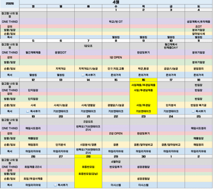 월부학교 봄학기 4월 목표 | 4월목표 | ||