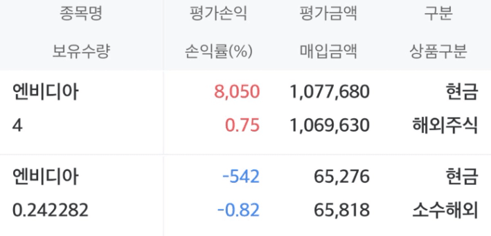 - 전부터 관심이 많았던 종목이 엔비디아이고 소액이지만 가끔씩 모으고 있었는데
