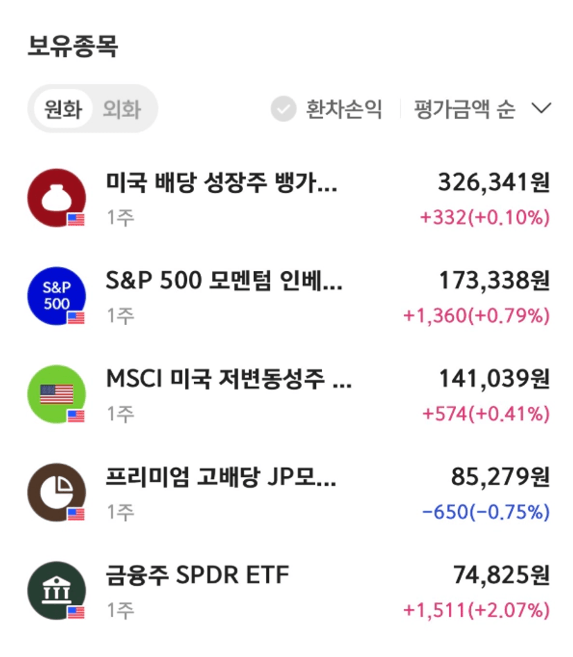 내 성향에 맞는(안정추구형 + 중립형) 포트폴리오를 따라 1주씩 먼저 매수했다