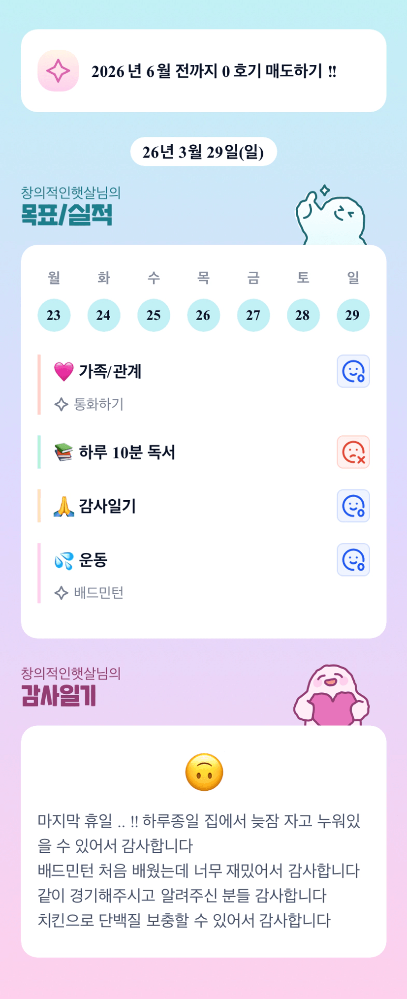 [창의적인햇살] 목실감 누적 200일, 연속 199일 진행중
