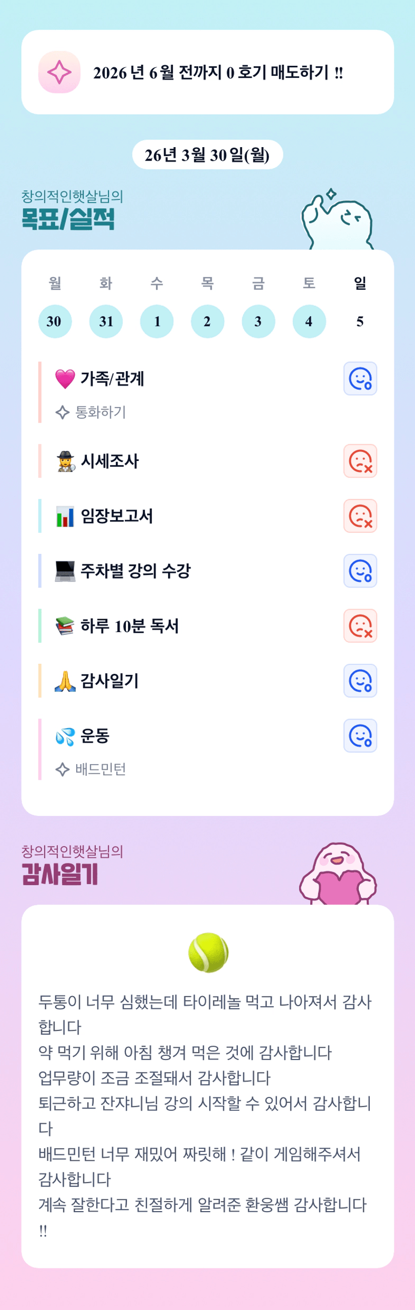 [창의적인햇살] 목실감 누적 201일, 연속 200일 진행중