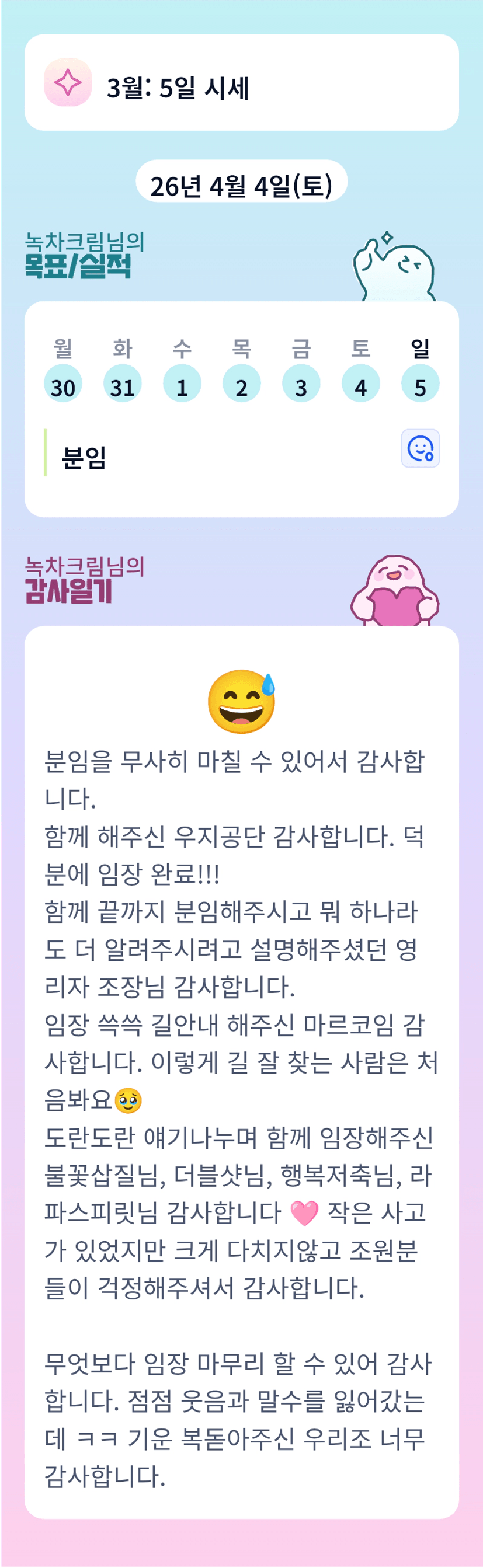 크림씨 고생많았슈~~~ 채고다