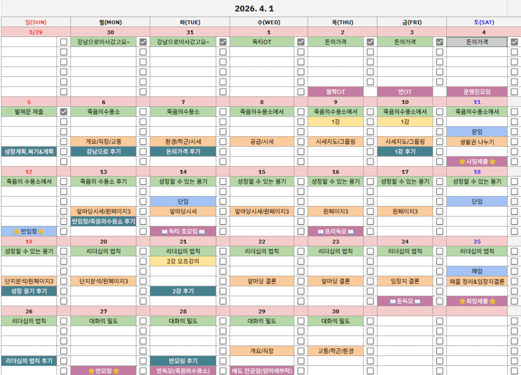 봄학기의 첫 시작인 4월 목표는