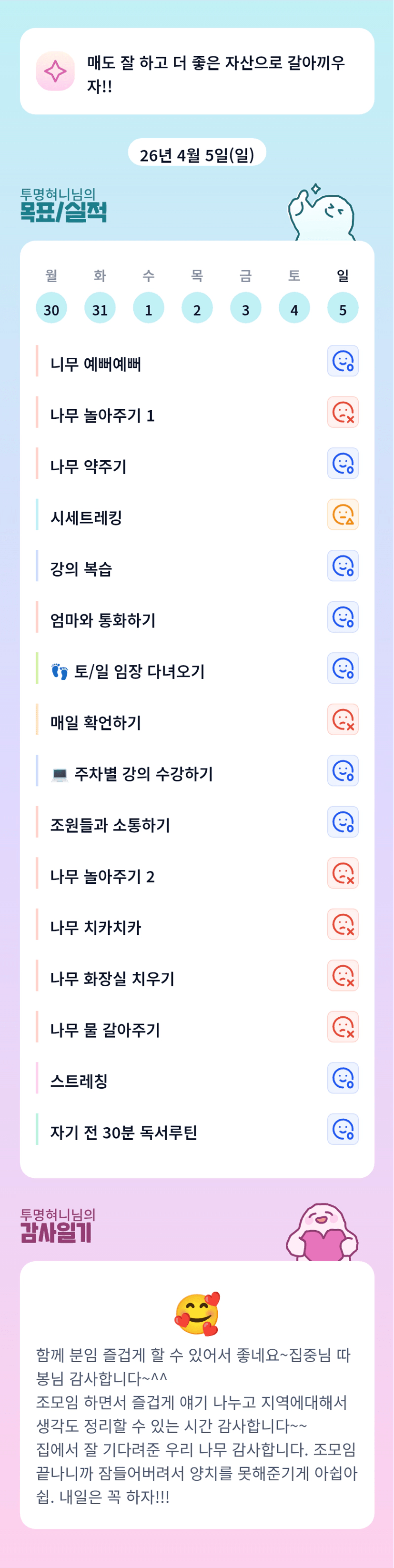 저도 행복 분임 했네요 ㅎㅎ 오늘 하루 수고 하셨어요.