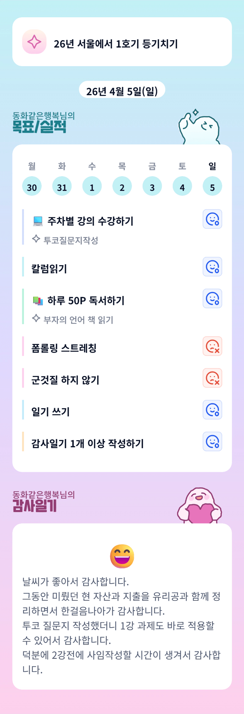 [열기 89기 61조 6개월만에 1년치 결과내조 동화같은행복] 1강 후기