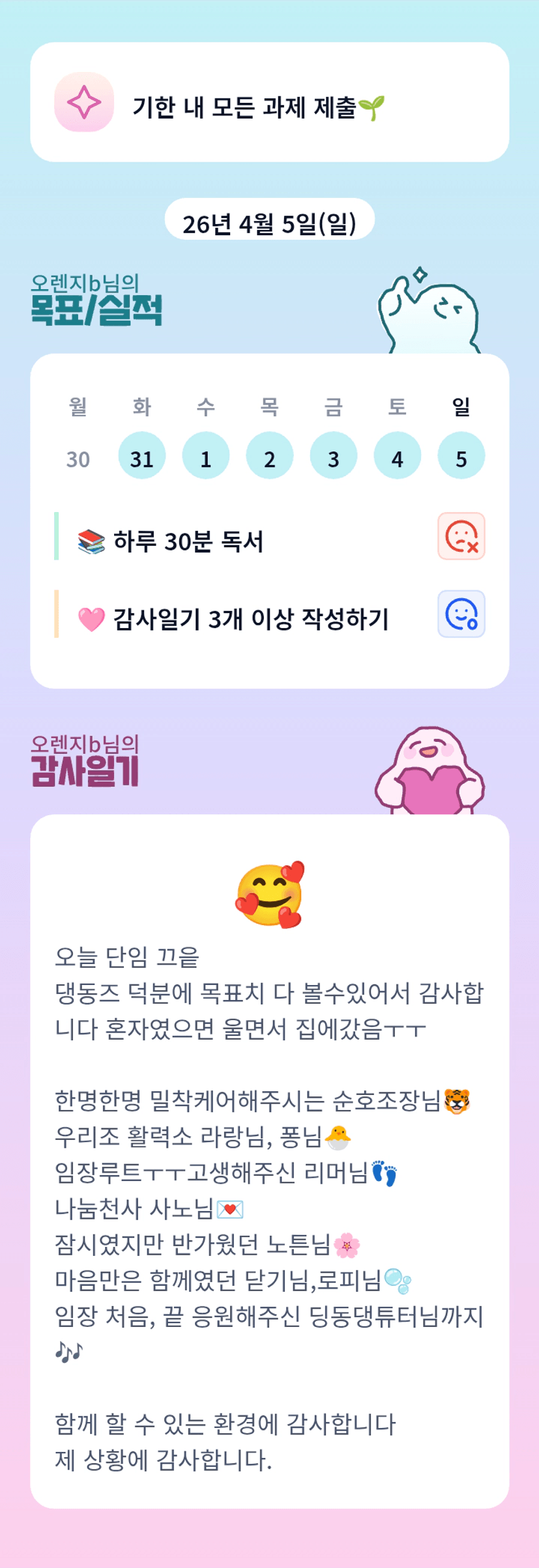 무사히 단임 마쳤으니, 푹 쉬시고 좋은 밤 되세요~