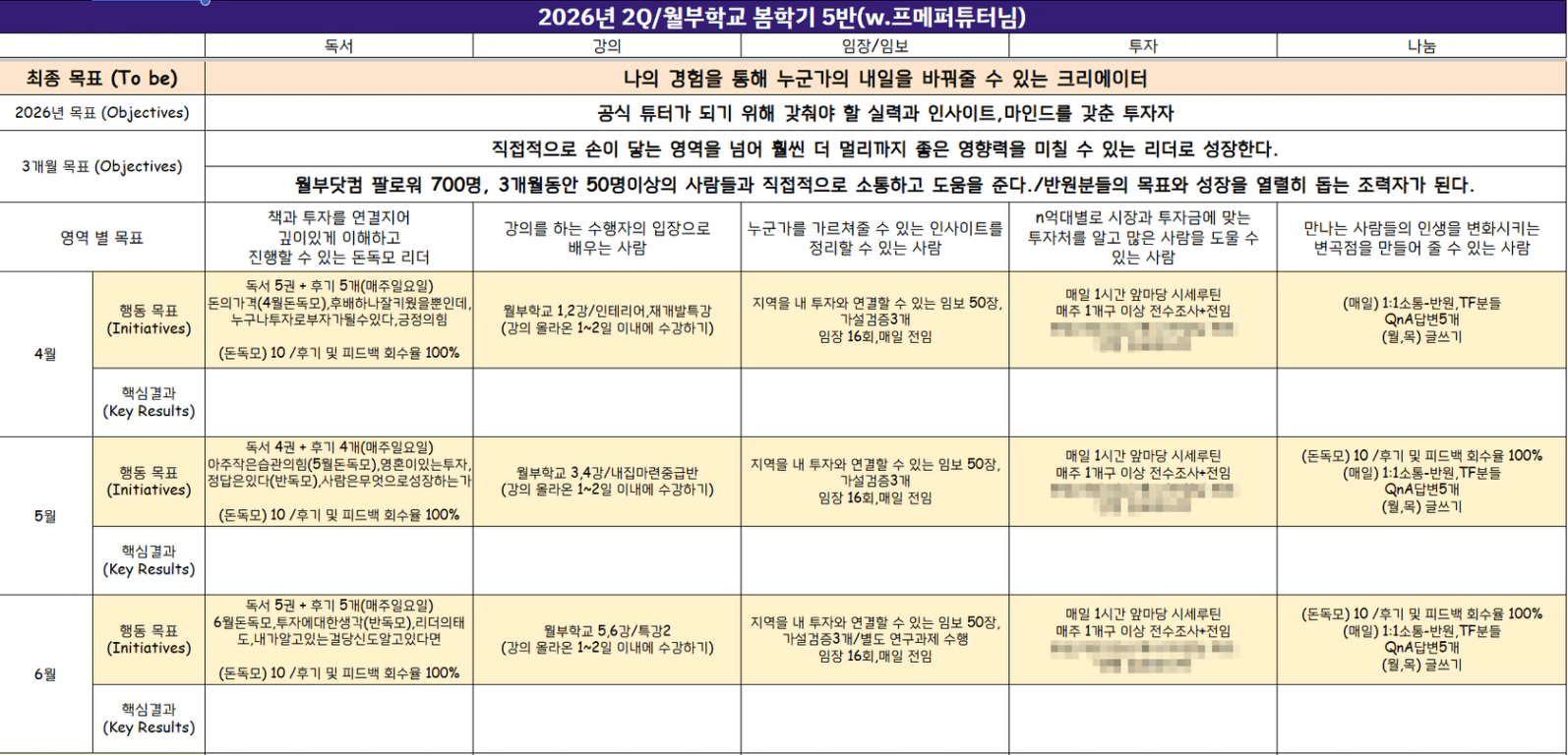 4~6월: 지역을 내 투자와 연결할 수 있는 임보 50장,가설검증3개/임장 16회,매일 전임