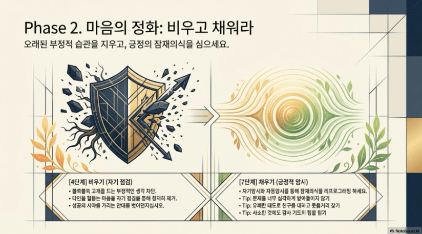 이러한 단계를 내 삶에 매일 적용하고 설천하며 생각과 말과 행동을 변화 시켜야 하며