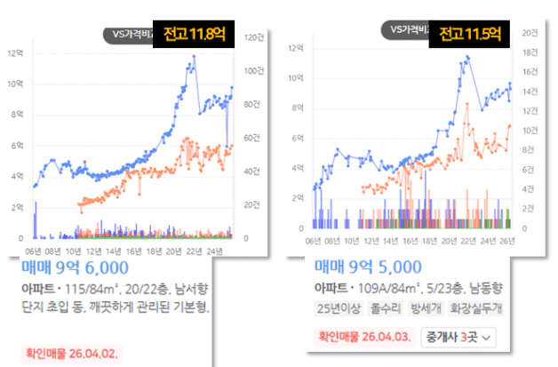 두 단지는 비슷한 흐름으로 움직였습니다.