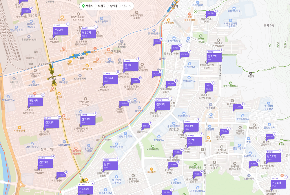 노원구의 상계동 인근도 상황은 마찬가지입니다.