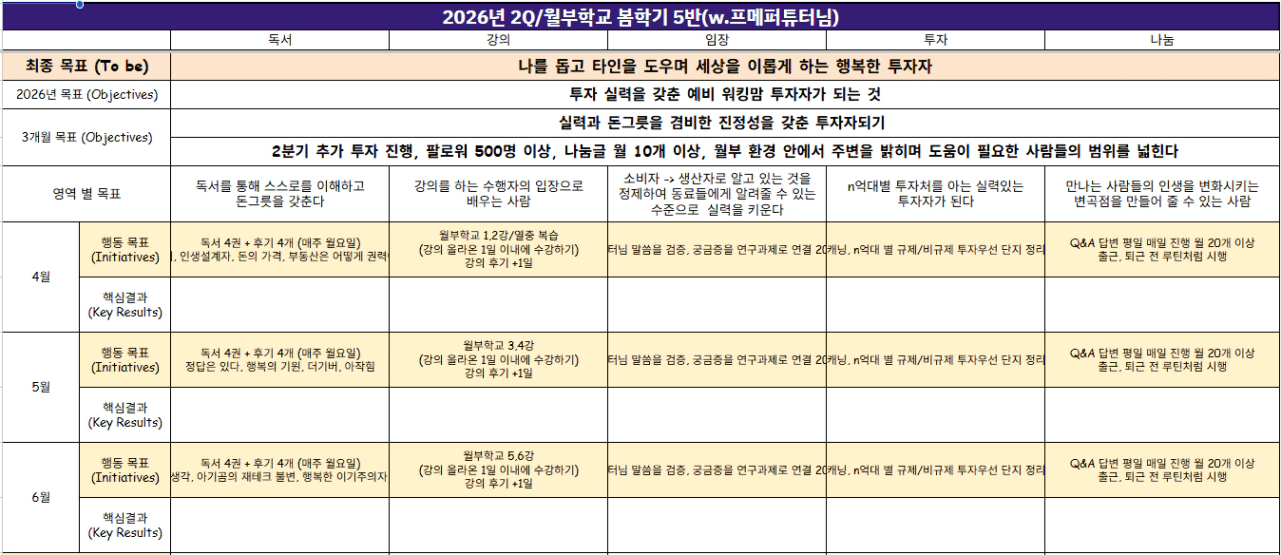 2,3월을 쉬고 월부학교 봄학기를 시작하게 되었습니다