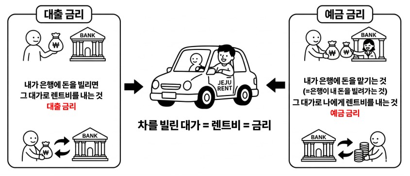 은행에 돈을 빌려 쓰면 그 대가로 렌트비를 내야합니다.