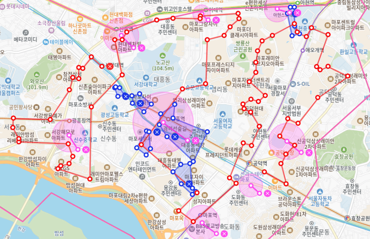 일정 상 하루에 마포구 전체 지역을 분임하기 어려워 이틀에 나누어 진행하려고 함