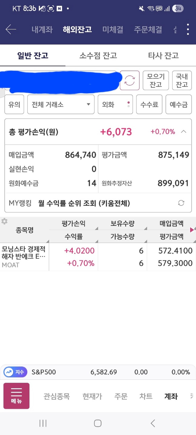 2주차 과제를 하면서 가지고 있던 현금으로 앞으로의 시장 상황에 맞다고 판단한 MOAT ETF를 바로 매수했고(저는 P입니다) 약 일주일만에 6000원이 이익이 났습니다. 지금은 수익이 났지만 저번 주 매수 후 다음 날 바로 가격이 떨어졌지만 광금러님께 배웠기 때문에 단기간의 등락에 흔들리지 않고 믿고 기다렸습니다(너무 거창;)