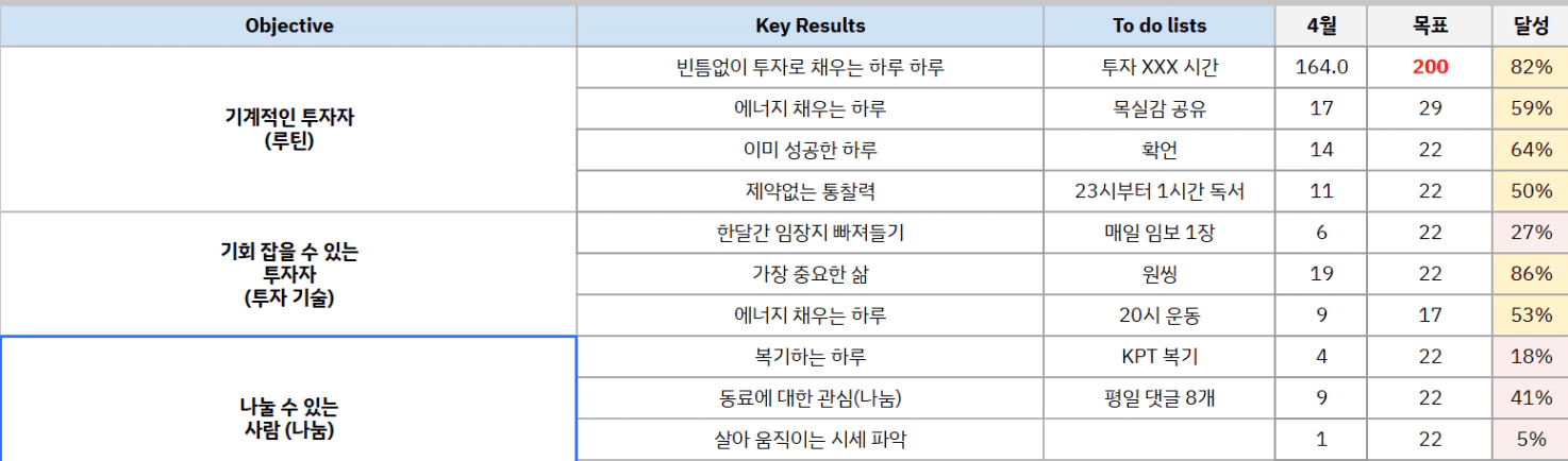 전반적으로 3월 중후반에 월부학교 환경이 끝나면서, 달성률은 낮았다.