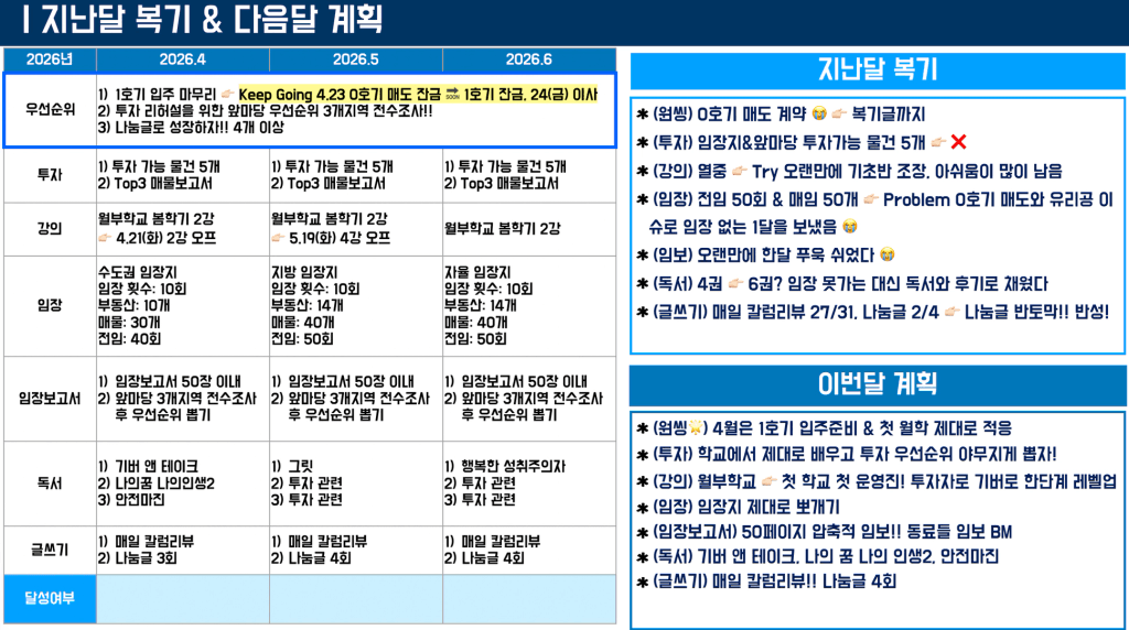 ✔️ 원씽인 매도에 집중하고자 임장을 내려 놓았음