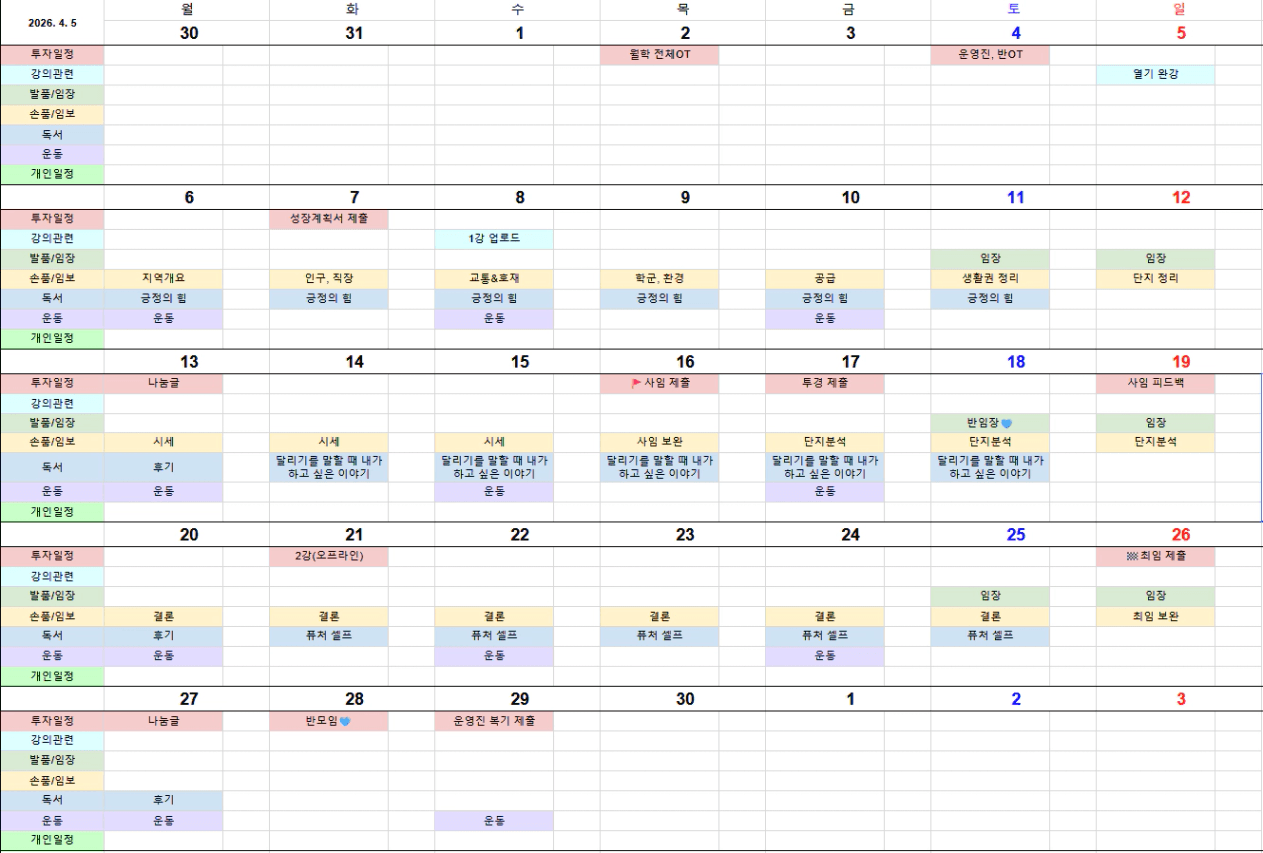 저녁 : 강의 / 임장 / 임보 / 글쓰기(1시간) / 독서후기(1시간)