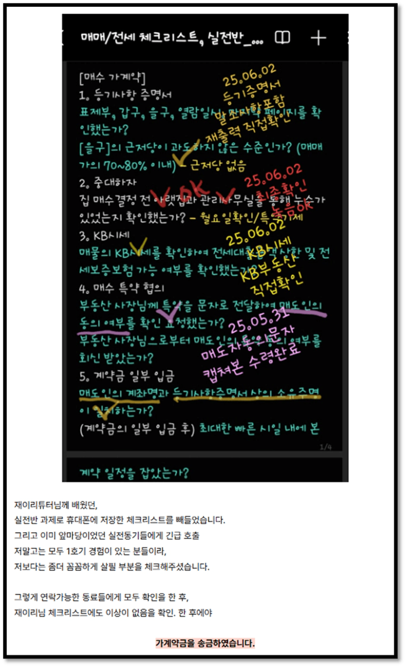 딱!! 배운만큼 체크리스트 하나하나 체크하고 가계약금을 넣었기 때문에