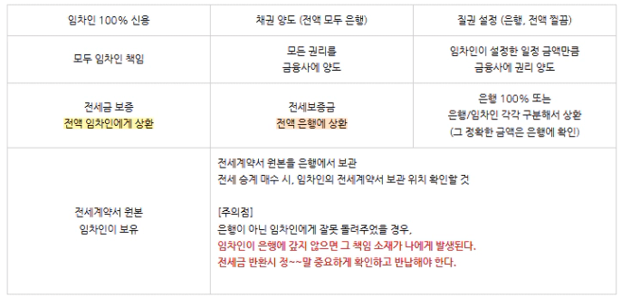 : 대출의 종류에 따라 전세금 대출 대상이 달라진다 (임차인일지 은행일지)