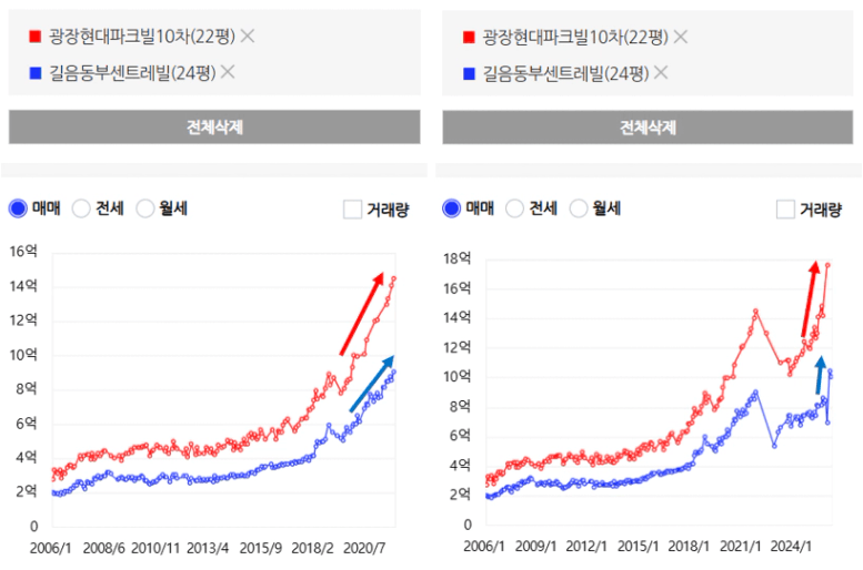 2급지 광진구 광장현대파크빌과 4급지 성북구 동부 센트레빌!!