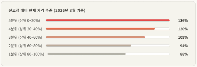 5분위(최상급지)는 이미 전고점을 36% 넘어선 반면,