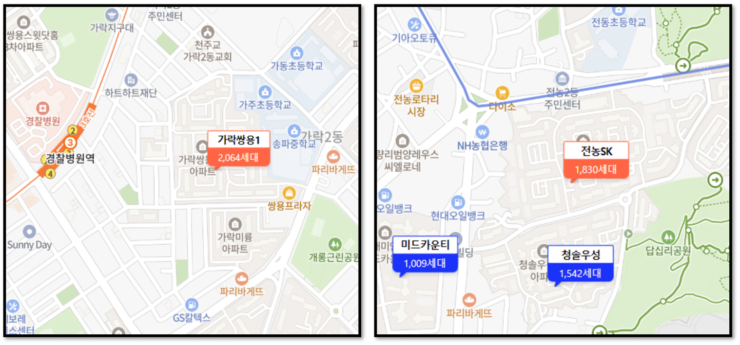 가락쌍용1차(33평)와 전농SK(33평)입니다.