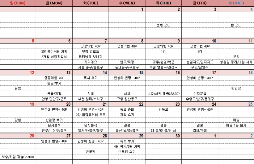 +전화임장 20 (다음주 부터 주말&강의날 빼고 2회씩)