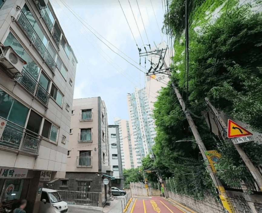 인근에 빌라들이 있고, 시끄러운 고가도로가 인접해있으며