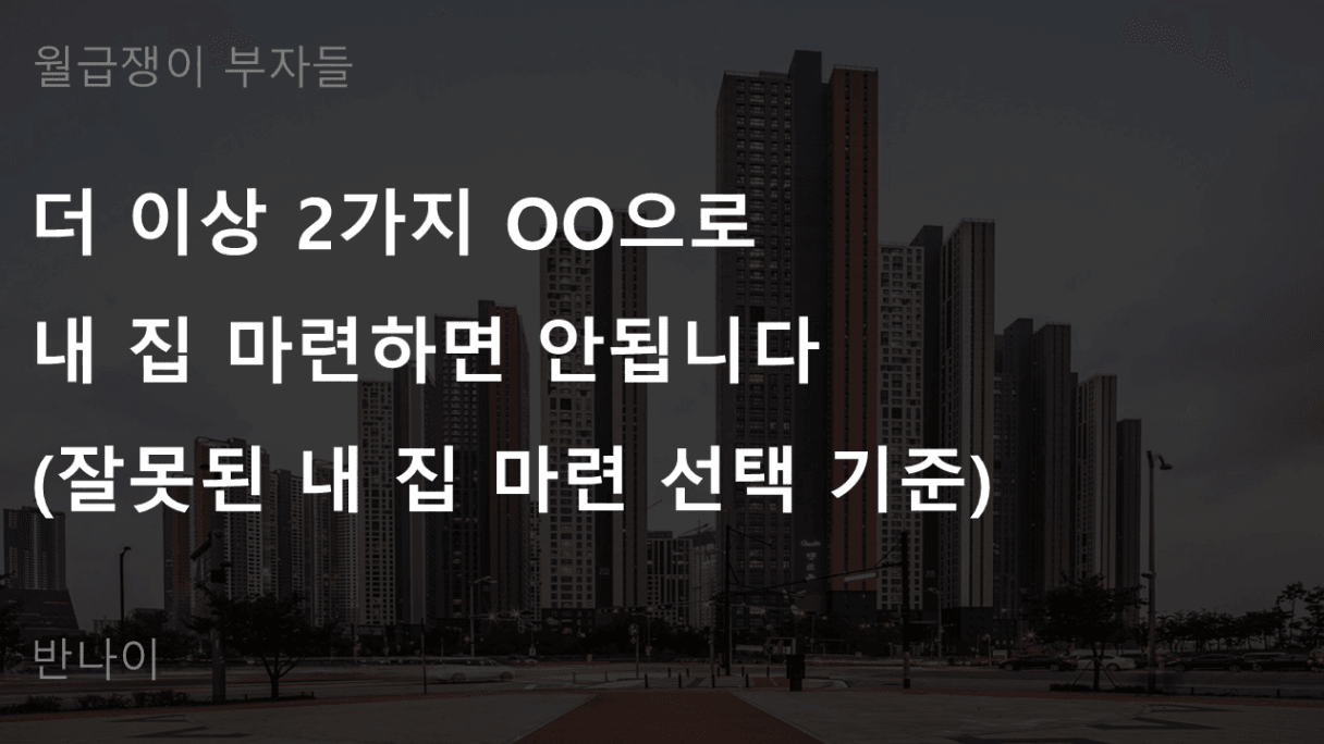 따라서 내가 올바른 기준으로 내 집 마련을 준비하고 있는지 체크해야합니다.