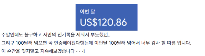내 시간과 노력, 그리고 내가 쓴 글이 처음으로 수익이라는 결과로 연결되고 있다라는 점입니다