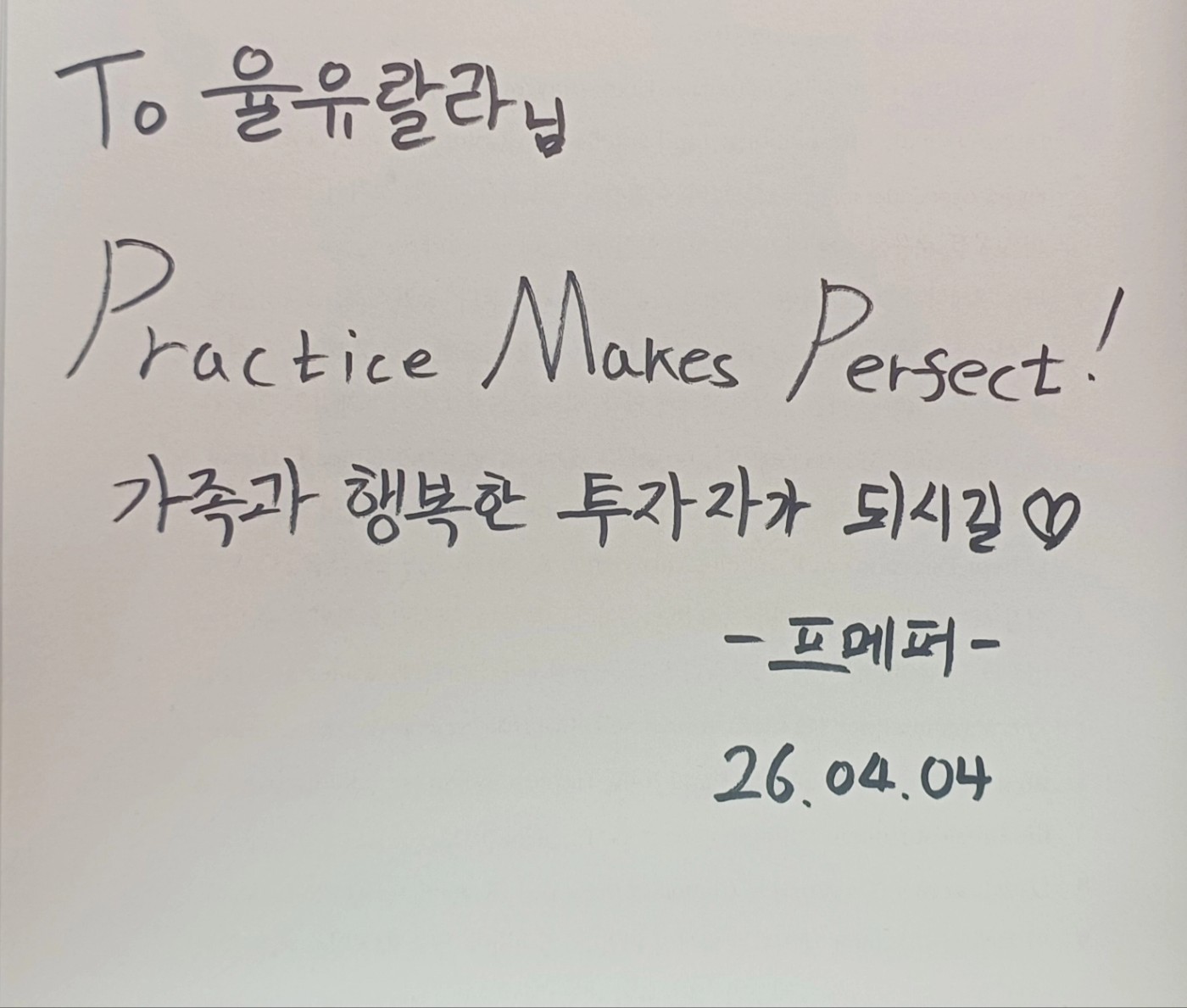 그리고 그간 고생한 유리공에게 따뜻한 격려와 투자에 대한 확신을 주셨습니다.