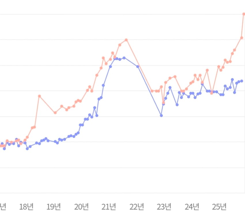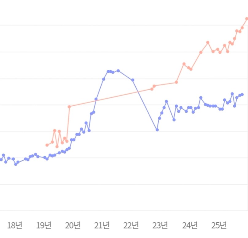 지금 3억 정도의 차이를 보이고 있네요.
