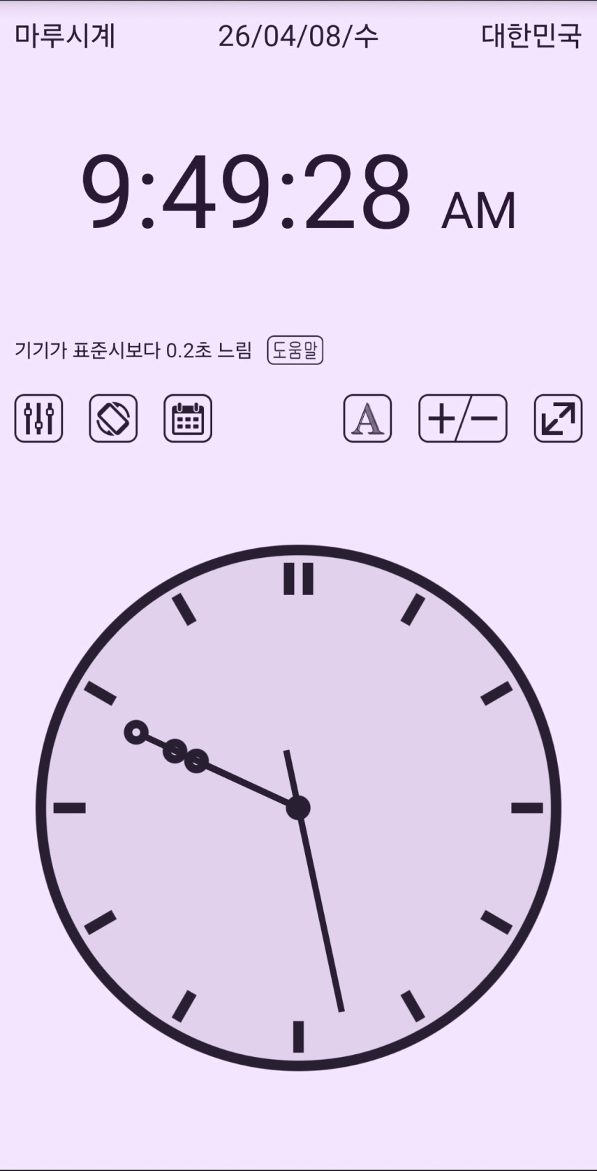 구글에서 마루시계로 검색하면 어플이 나오는데요 아주 심플한 어플이지만 정확한 시간과 초단위가 바늘로 보여져서 이 다음 꿀팁을 위한 기본 베이스가 됩니다.
