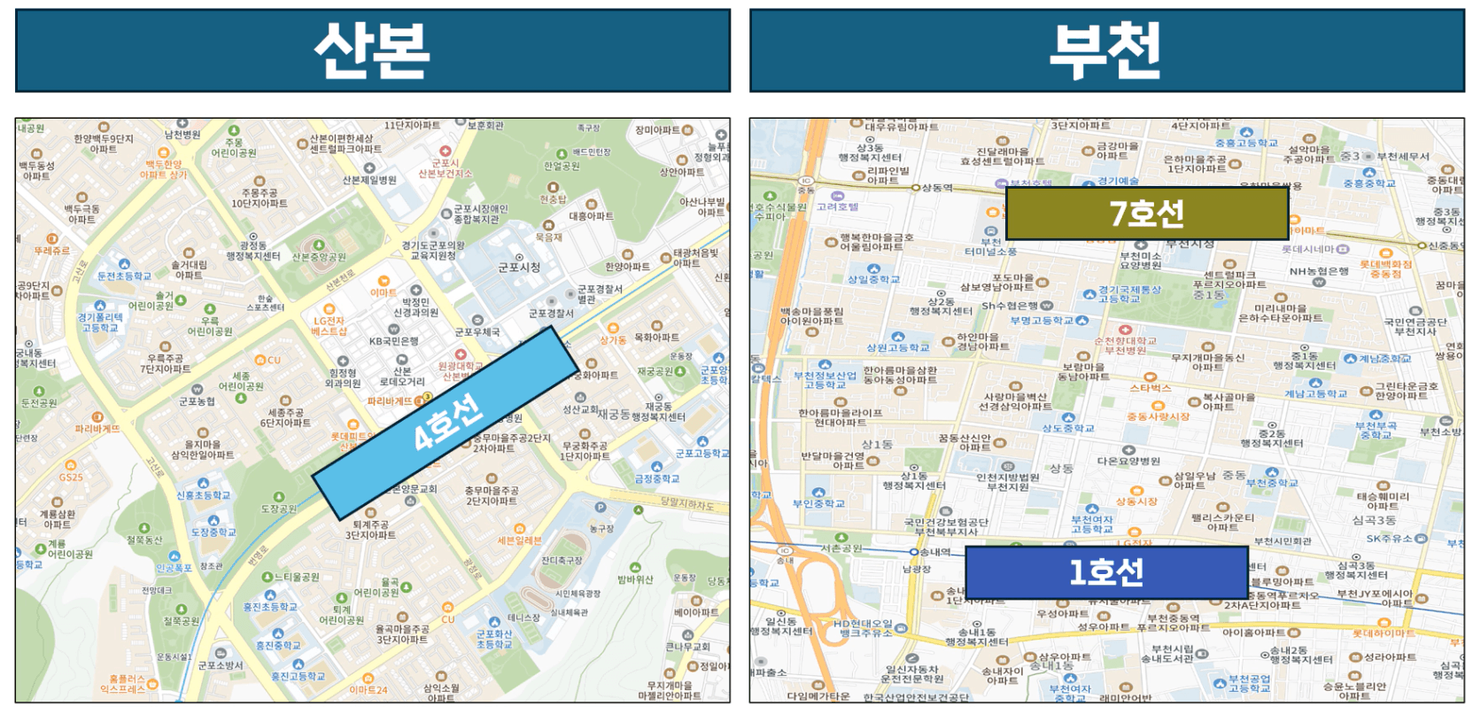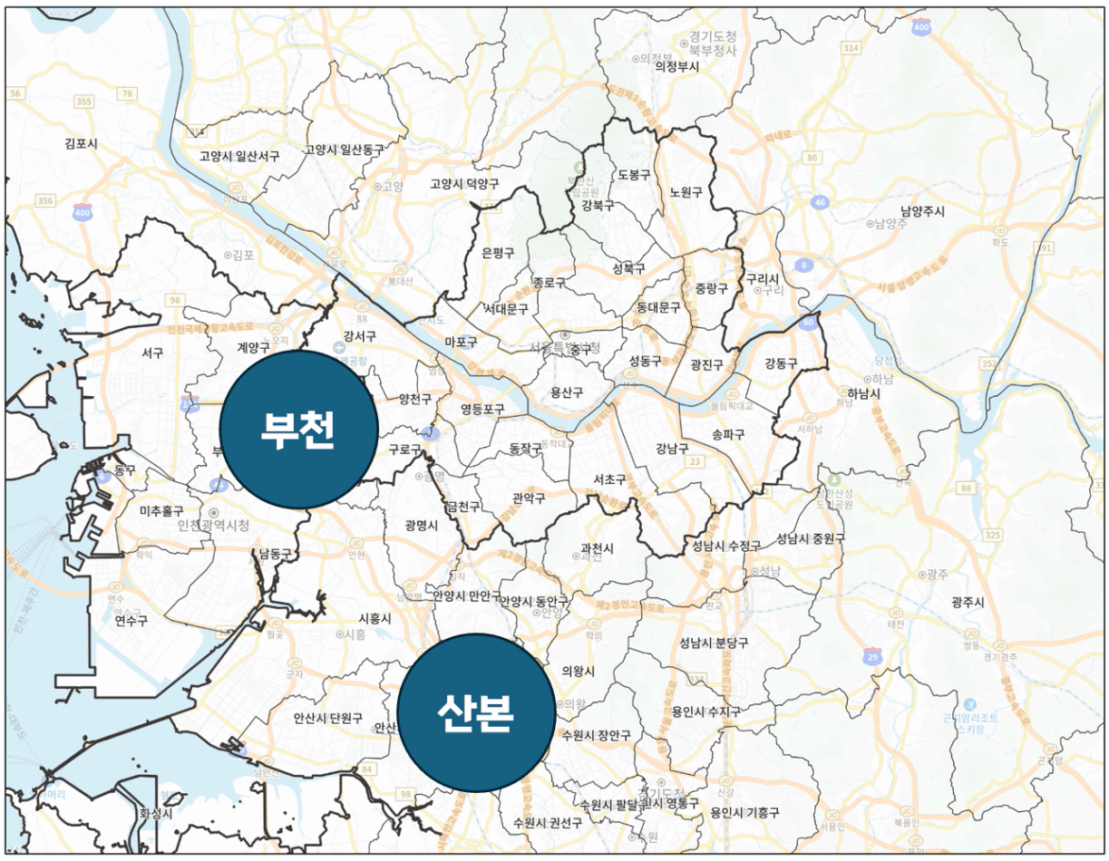 부천은 서울 구로·신도림과 생활권이 사실상 맞닿아 있고, 1호선·7호선 등 서울 출퇴근이 편한 노선이 잘 갖춰져 있습니다. 서울에서 밀려나는 실수요자들이 처음으로 눈을 돌리는 지역 중 하나입니다.